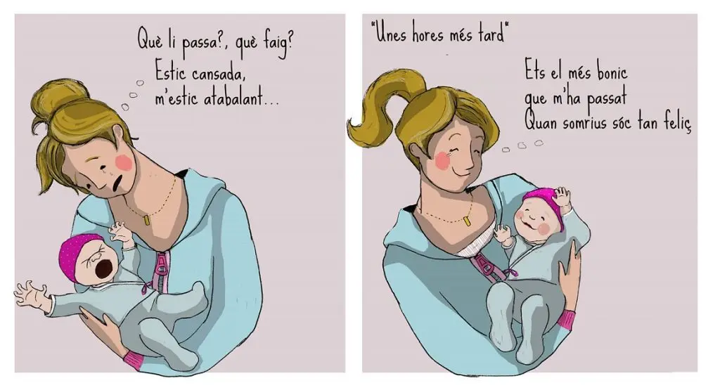 A més, les seves hormones estan on fire , per això en alguns moments se sent súper súper feliç i plena d’amor, i una estona més tard, se sent de plof total’ i pensa que no podrà tirar endavant… Els canvis en l’estat d’ànim són completament normals els primers mesos de la maternitat, també són temporals i els bons moments acaben compensant.
